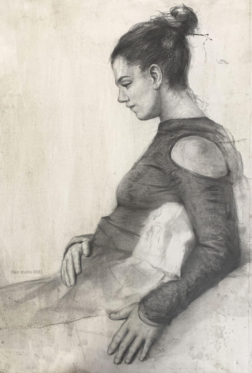 在畫半身模特寫生時,臉部起伏需要配合整體明度關係