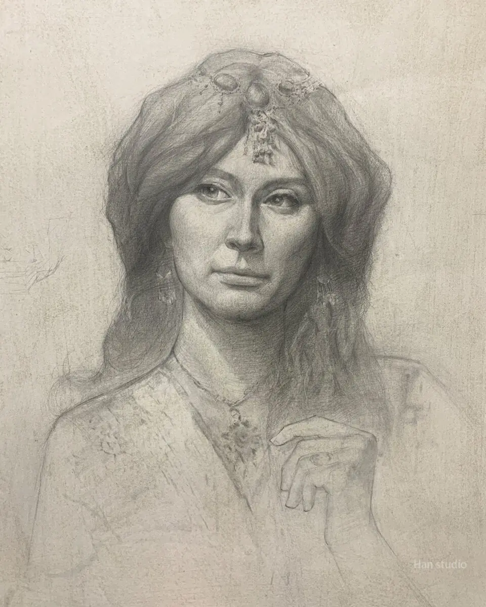 The second picture shows a simplified model of the head at different angles, if you want to know the proportion and structure of the portrait, you can follow along.![]()