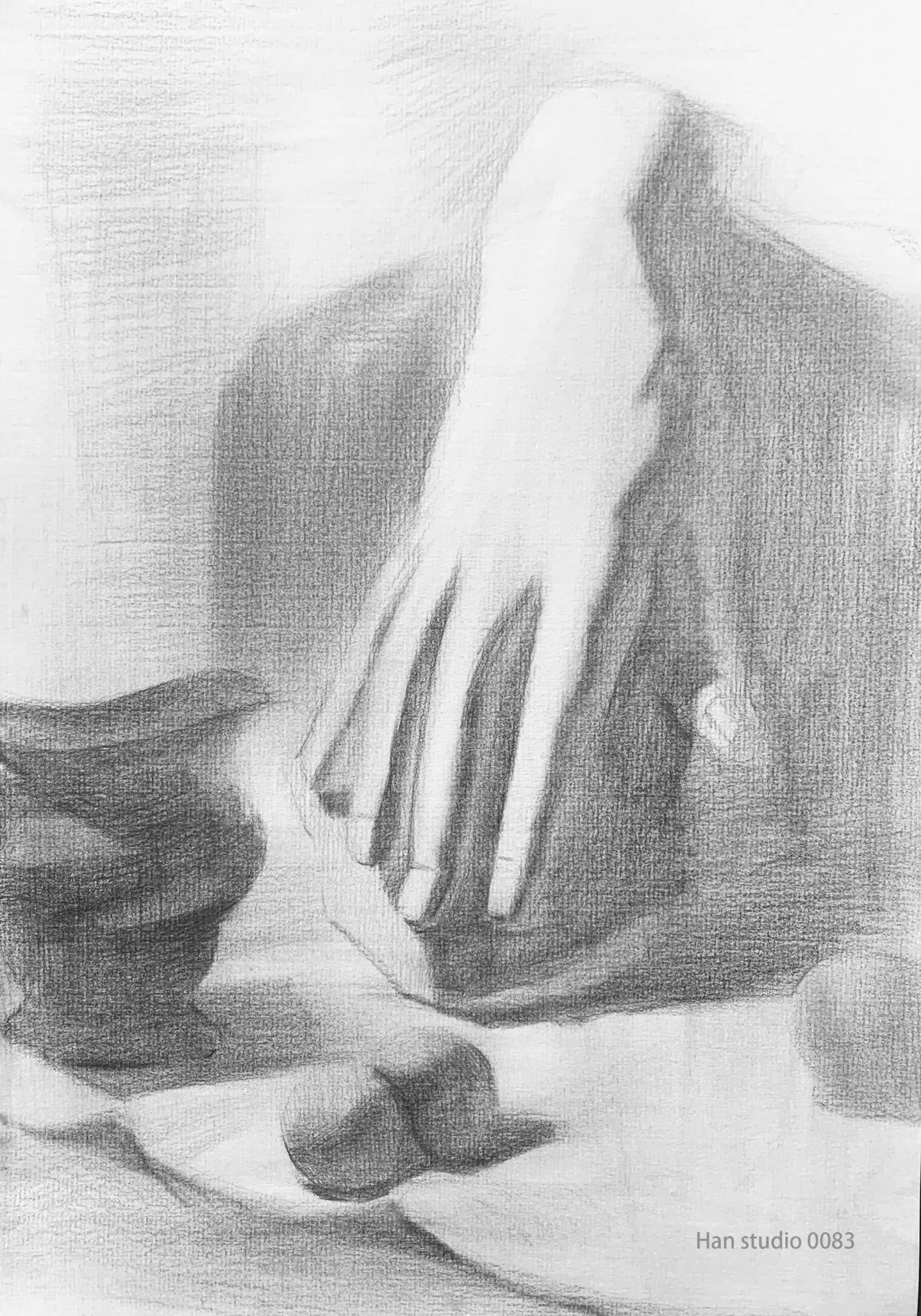 In addition to outlining the contour of the object with a light brush and identifying the relationship between the front and back of the shape, the length of the contour line is one of the factors that enrich the variation.