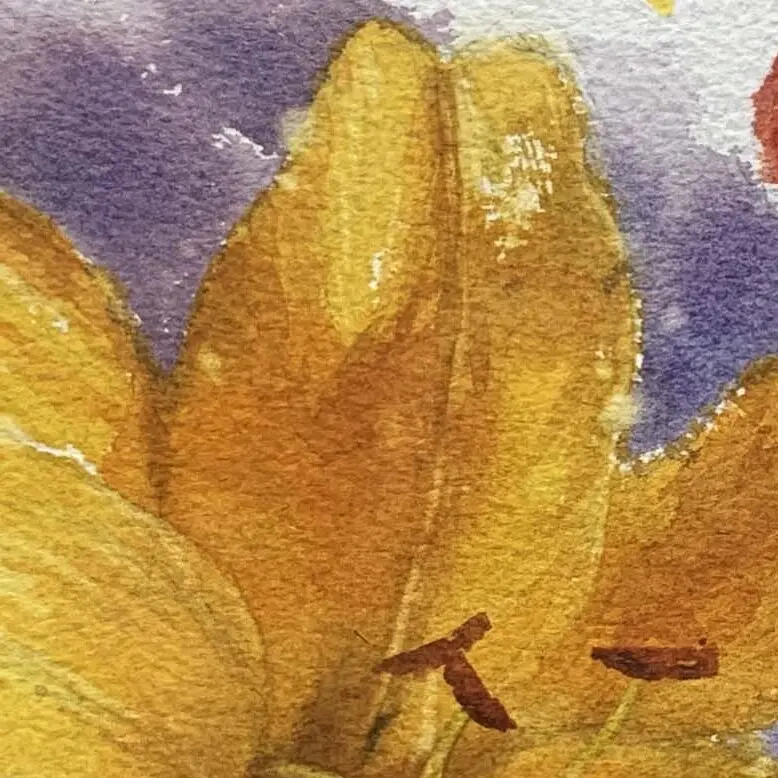 Yellow lily: mainly warm (lemon yellow (greenish yellow), cadmium yellow (slightly reddish yellow), dark yellow, orange-red) yellow as the main, the shadow part can be added to a small amount of blue tone, more gray with the yellow color.
