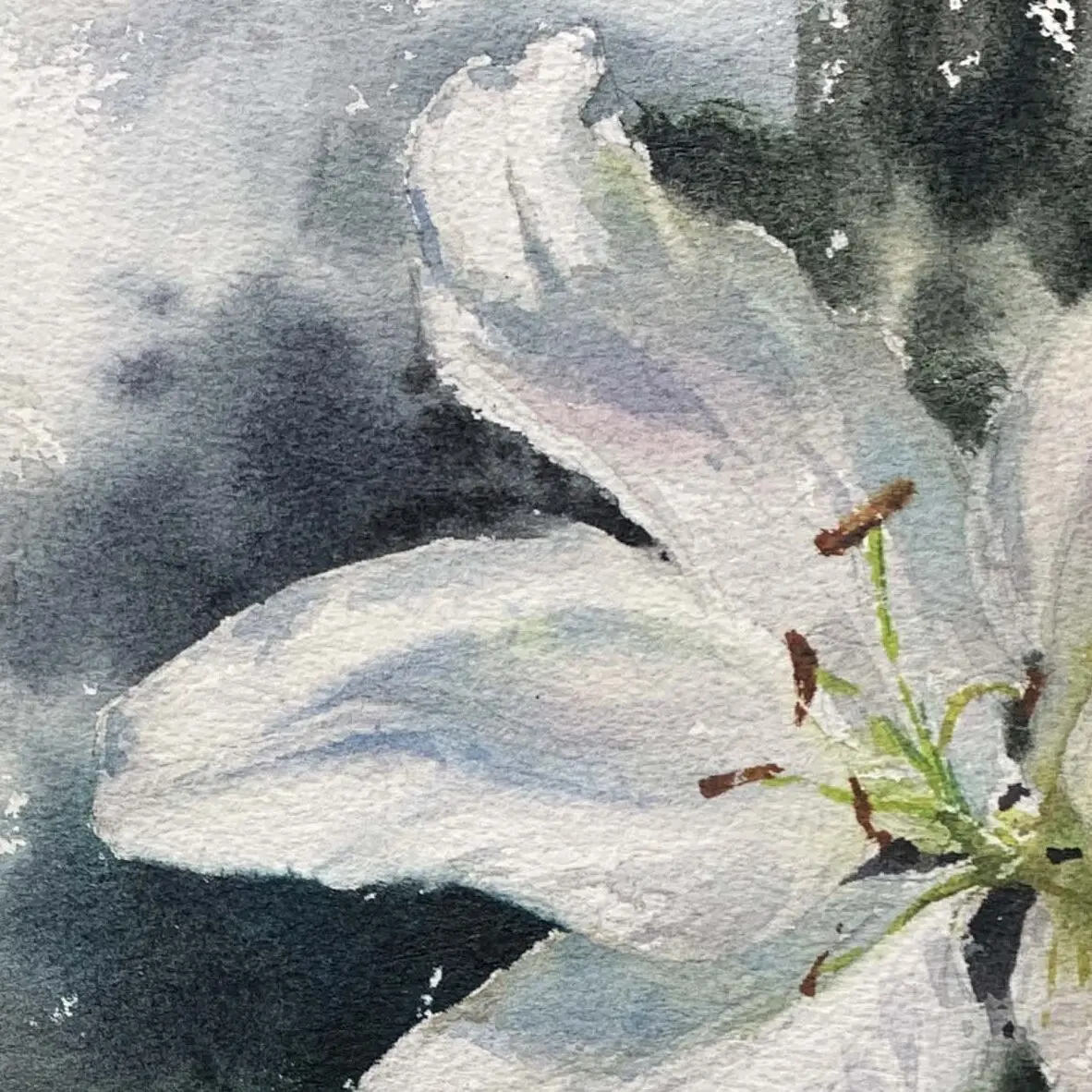 White lilies: Observe the real thing can be found in the dark areas can be added to the cool and warm color shades (such as blue purple, gray purple) to create layers.