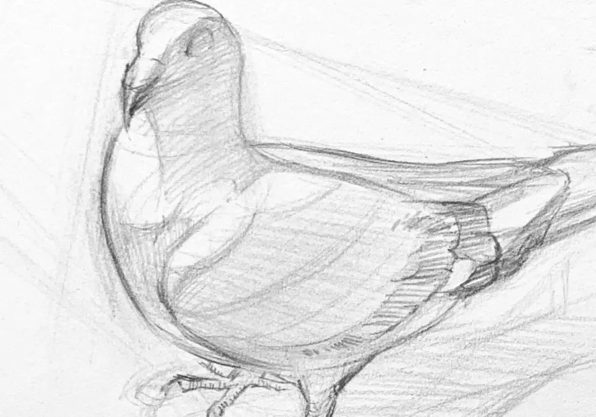 注意整體長寬比例,鴿子的身體可用圓形、三角形、矩形來概括表示,