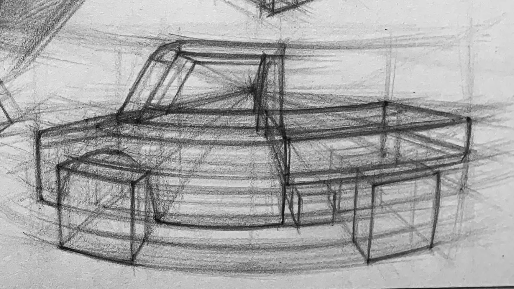 整個車體可以用透視來呈現立體感,想像是一個轉了角度的方盒子,