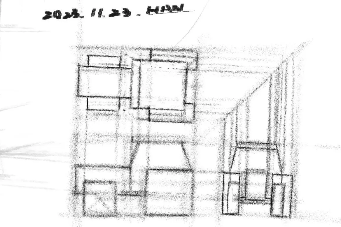 - 從最大外輪廓形狀先開始,注意一開始大的比例、透視是否有明顯歪掉。