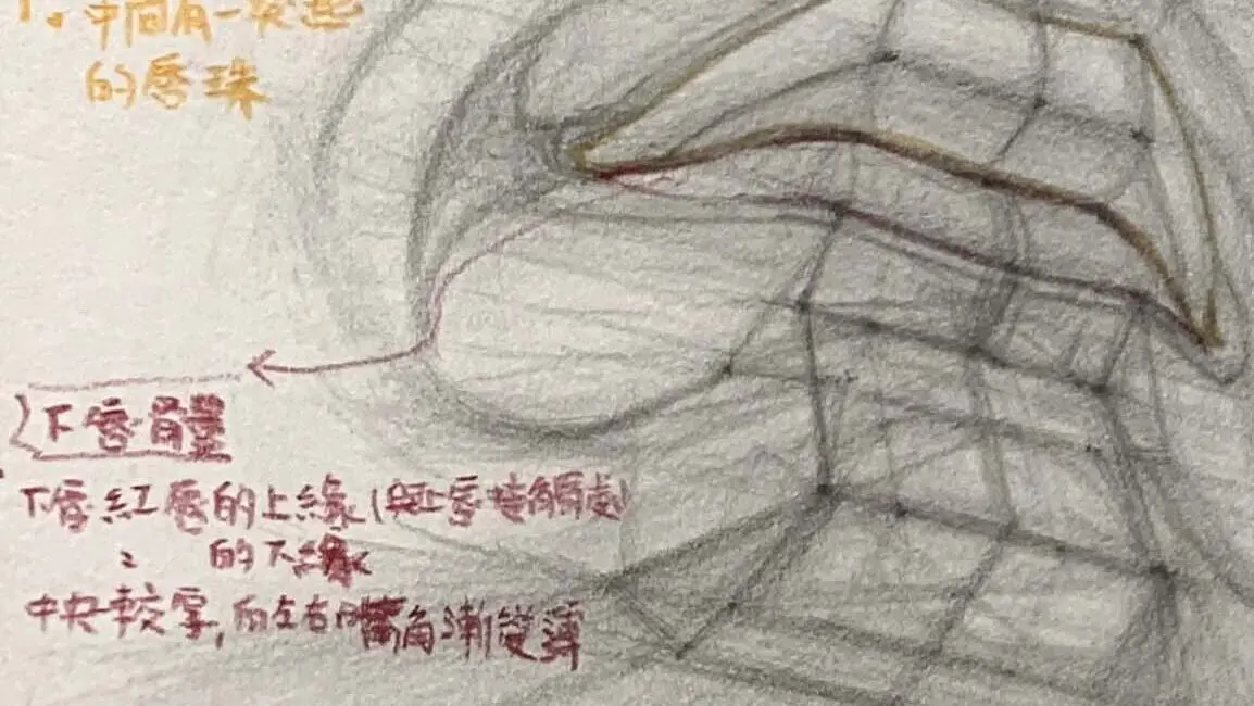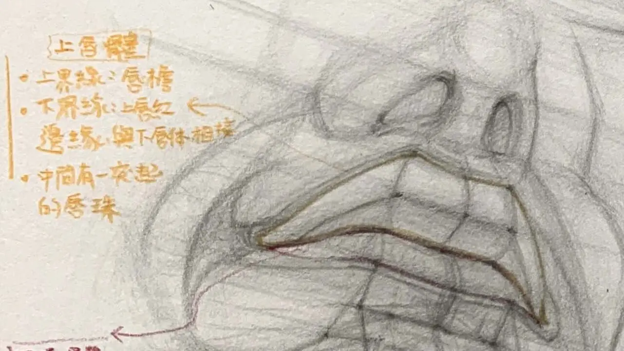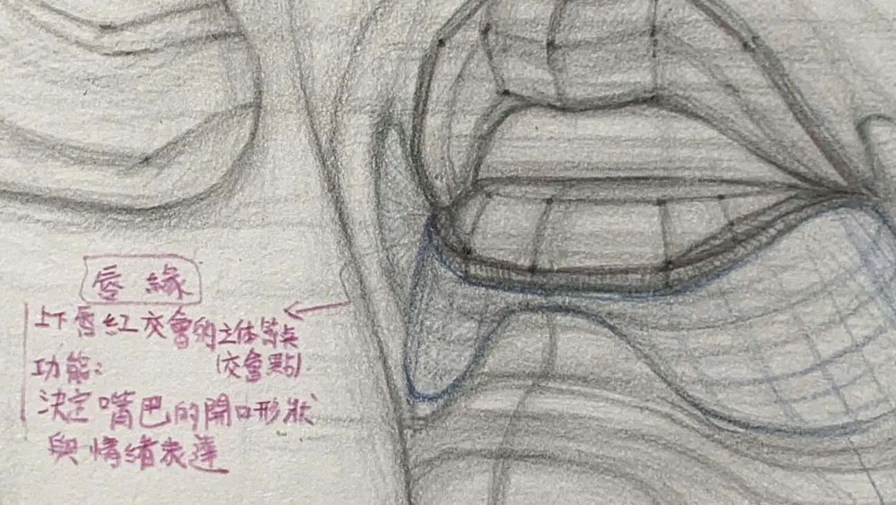 只要理解唇珠、唇墩、口角、頦唇溝這些重點,並觀察光影節奏變化,就能把嘴唇畫得自然、有厚度,讓人物更真實、更有表情張力。
