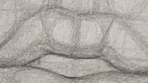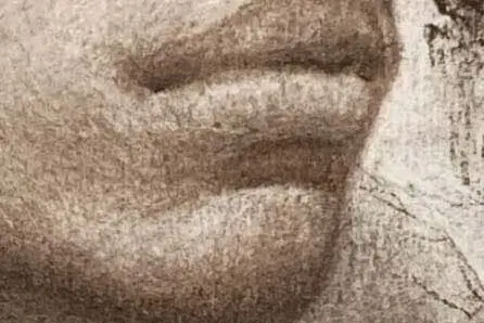 畫完嘴唇後用輕柔的線條表現嘴唇周圍肌肉起伏