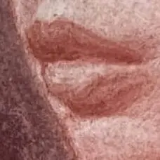 我們還可以將上、下嘴唇分成內外層,外層是受亮面,內層是轉進暗面後的部分,內外層交界線可以參考中間的小圖,一條順著嘴唇結構起伏的線條。