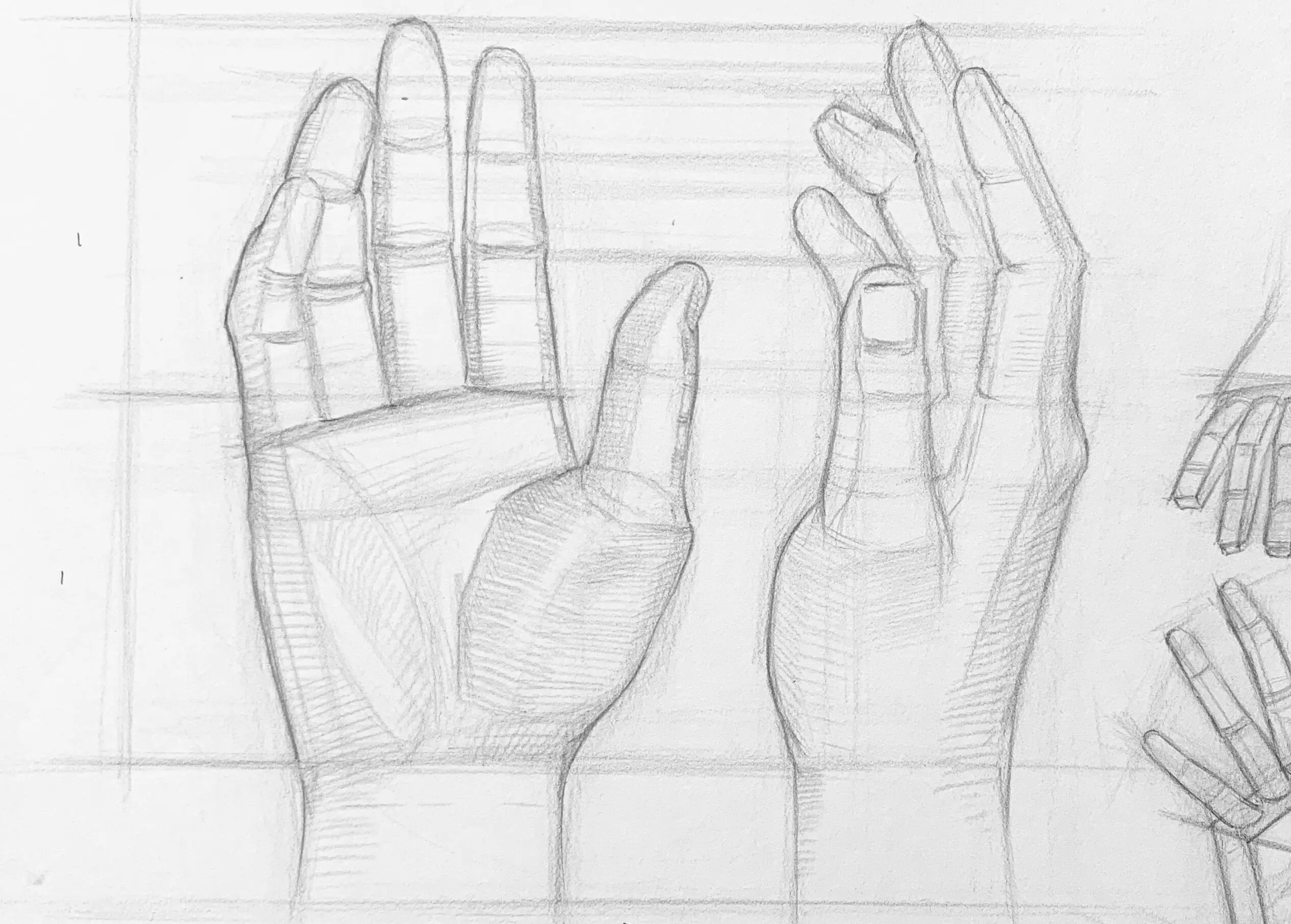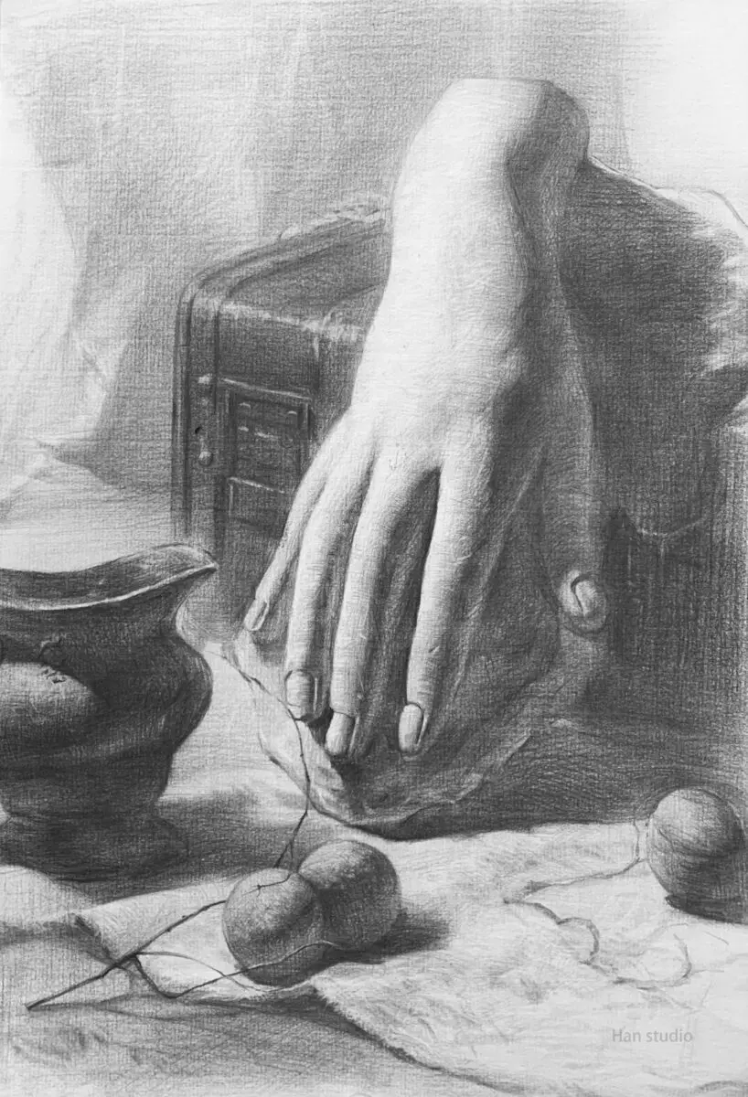 手掌結構素描、石膏靜物組課堂示範