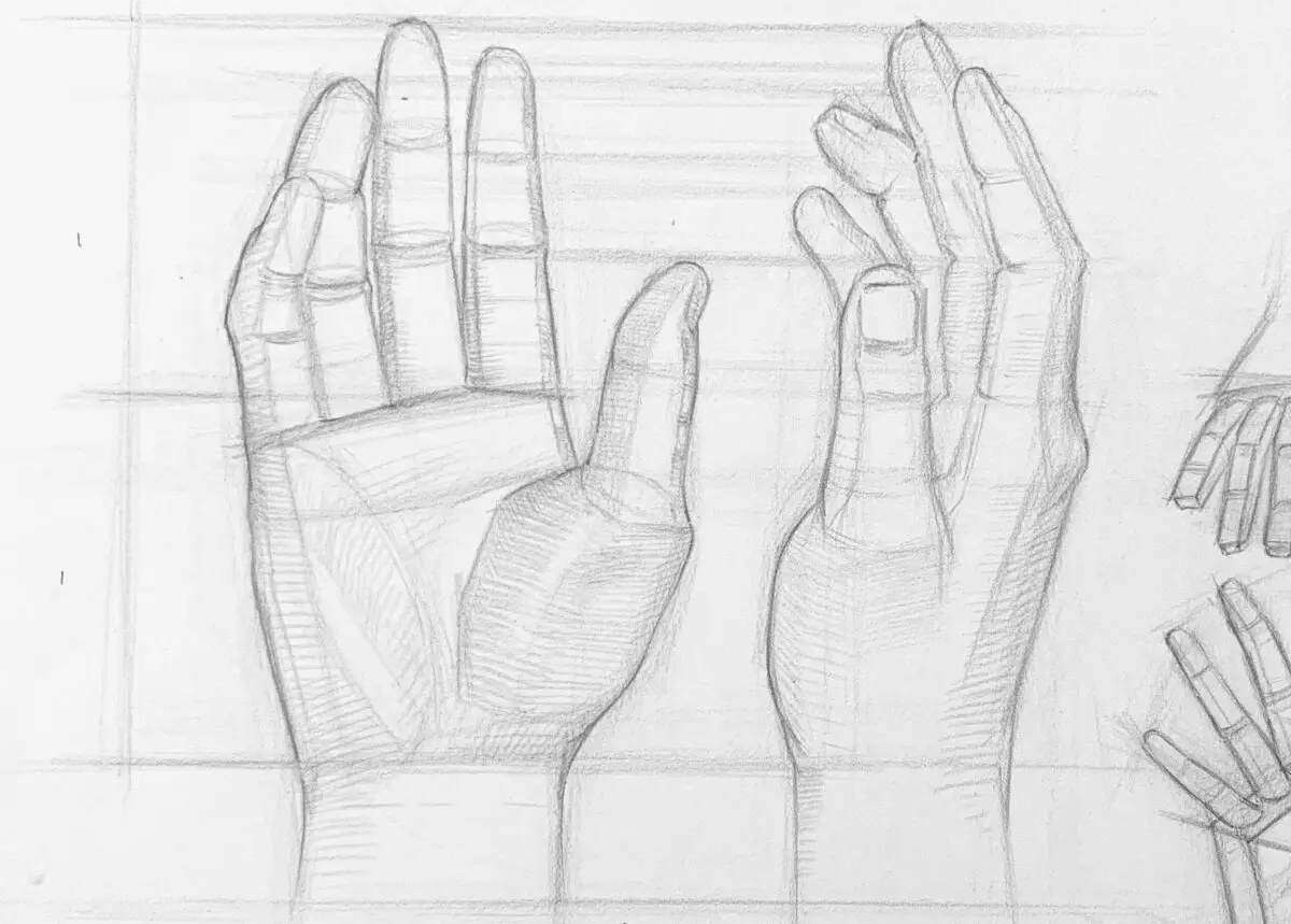 參考第一張圖右邊,用像是積木的幾何形狀,方便理解手指面的轉折。