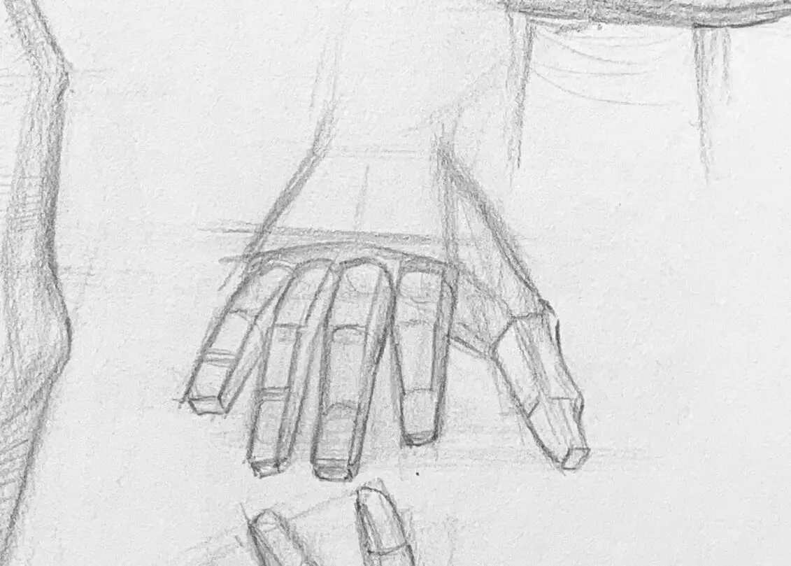 – 描繪手指和手掌的細節,注意有些線條會因為被擋到,產生前後關係的線條。