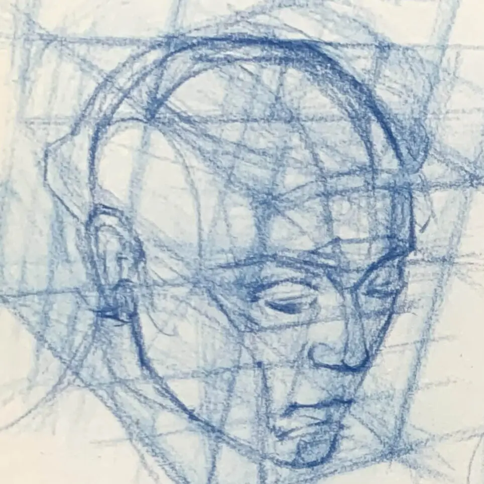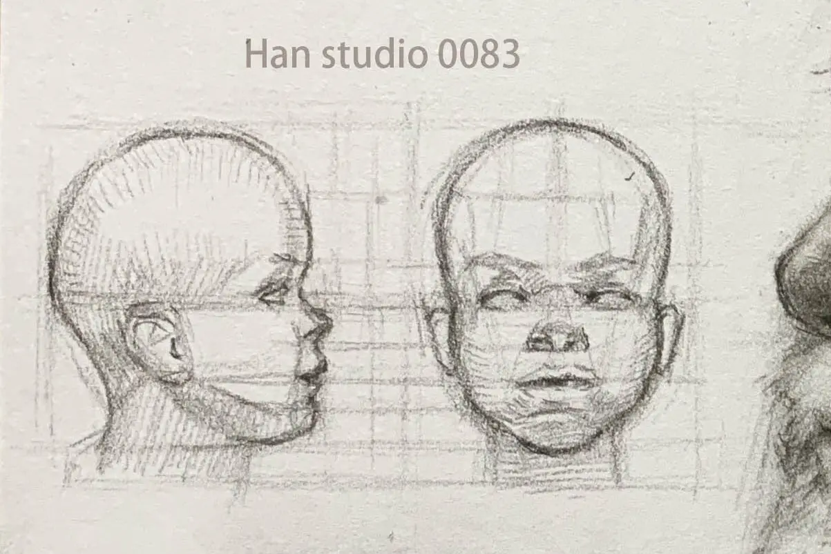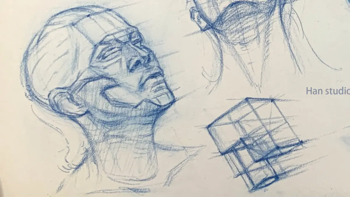 後仰:先把頭型簡化成幾何體,專注比例關係再補細節。