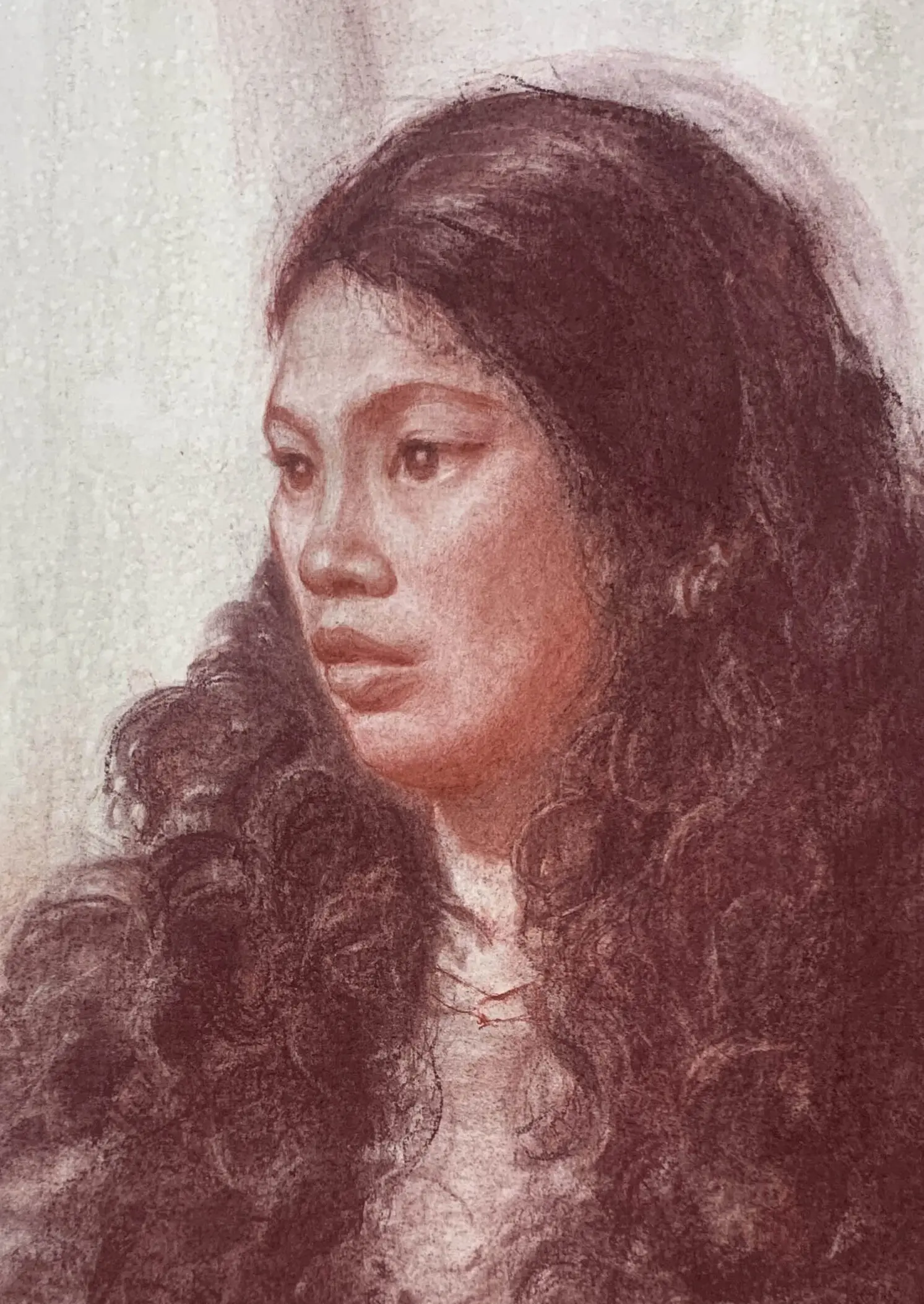 在畫半身模特寫生時,臉部起伏需要配合整體明度關係