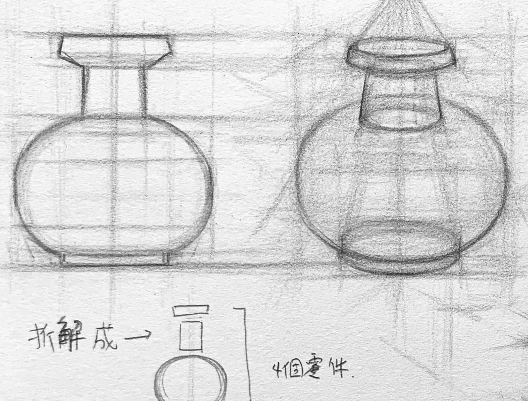 觀察並確定壺的各部分比例關係。可以從整體外形