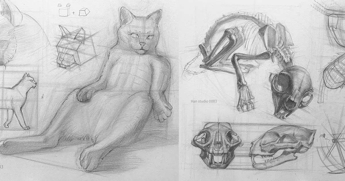 學習如何畫貓咪,從基本幾何形狀(方塊、梯形、圓形)構建頭部與身體,掌握比例與動態姿勢。